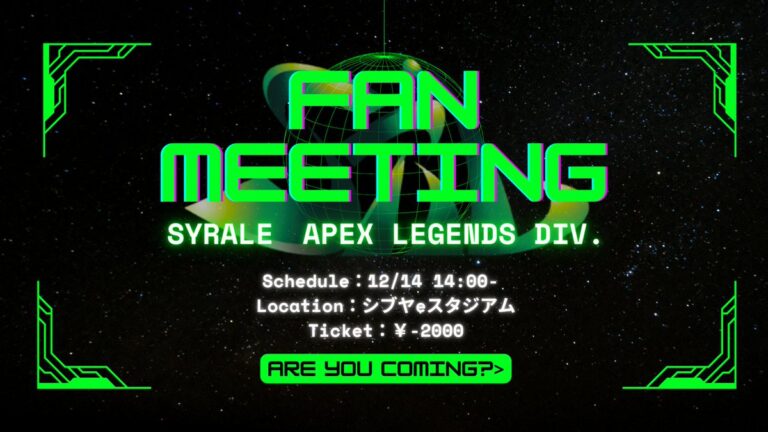 12月にSYRALE初のオフラインイベント、「Apex部門 FAN MEETING」を開催することを決定いたしました。